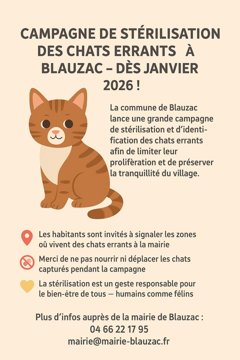 CAMPAGNE DE STERILISATION DES CHATS ERRANTS - BLAUZAC -