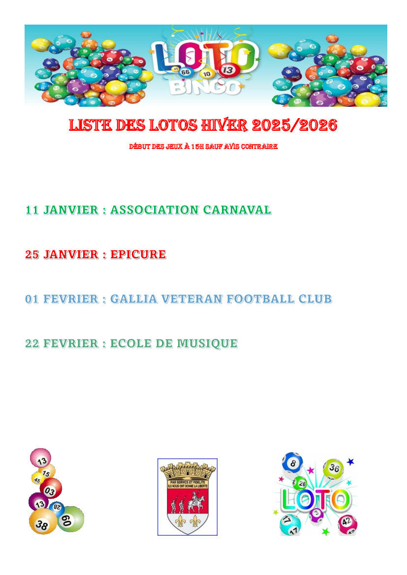 Liste des lotos à venir sur la commune pour 2026