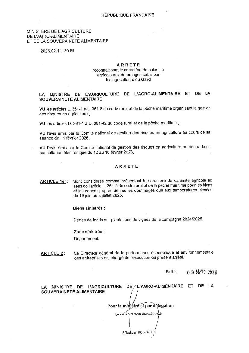 AVIS AUX AGRICULTEURS - CALAMITES AGRICOLES