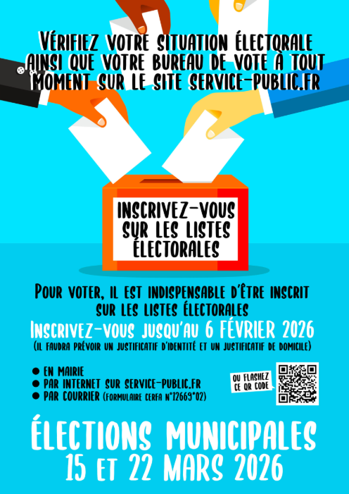 RAPPEL : Vous avez jusqu'au 06 février 2026 (dernier délai) pour vous inscrire sur les listes électorales