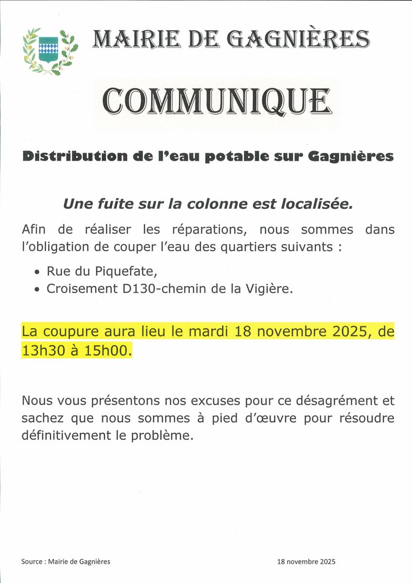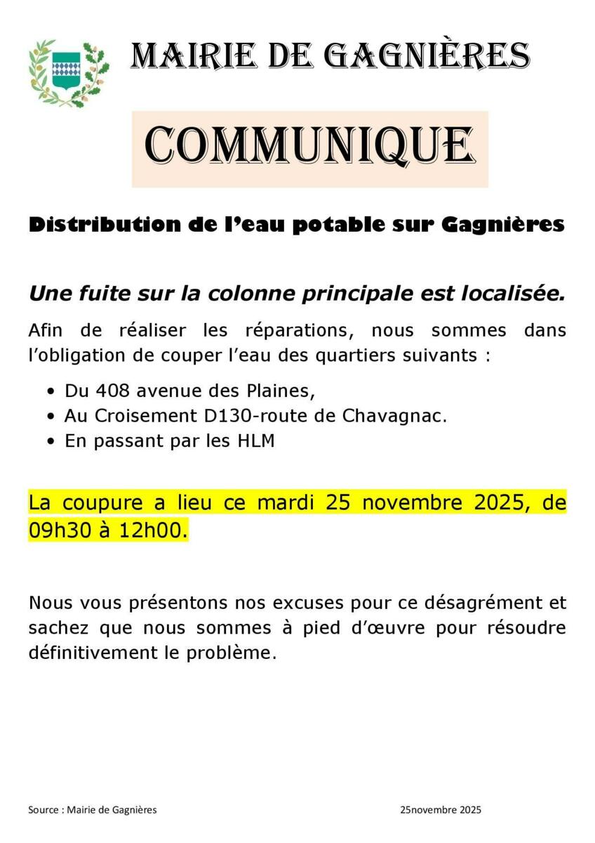 Une fuite sur la colonne localisée ce mardi 25 novembre