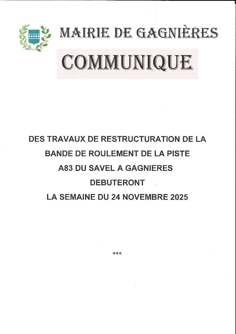 TRAVAUX SUR LA PISTE A 83 SAVEL