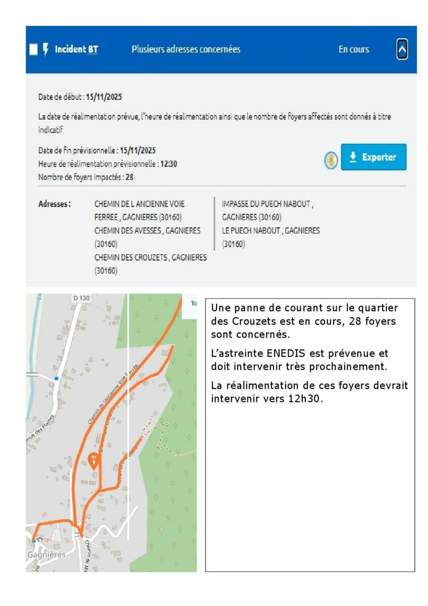 PANNE DE COURANT QUARTIER DES CROUZETS