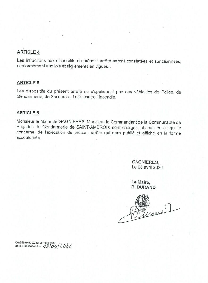 ARRETE DU MAIRE pour le 13-14-15 avril "Rive de la Ganière" 09/04/2026 ARRETE DU MAIRE pour le 13-14-15 avril "Rive de la Ganière"