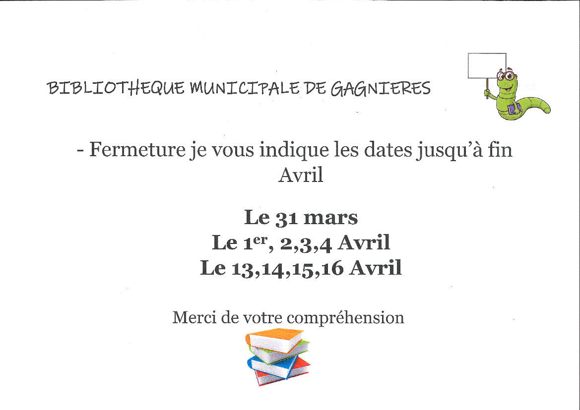 FERMETURE BIBLIOTHEQUE