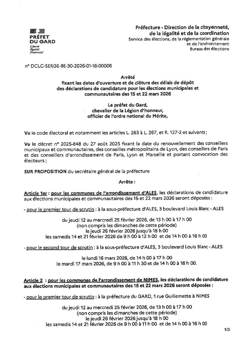 Arrêté préfectoral élections des 15 et 22 mars 2026