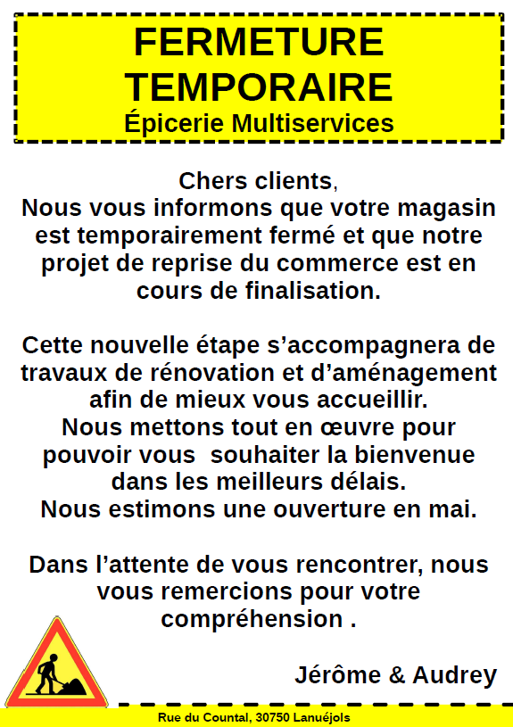 Fermeture Boulangerie