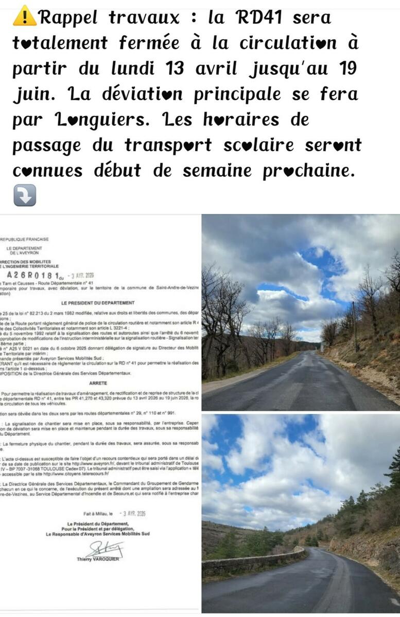 Fermeture Route de Millau RD41