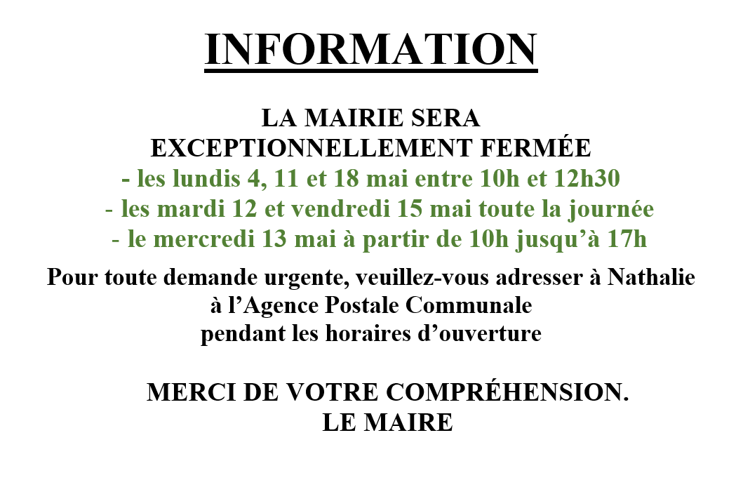 Fermeture mairie - Mai 2026