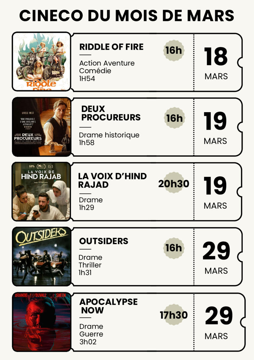 - Dimanche 29 mars à 17h30 : Apocalypse Now