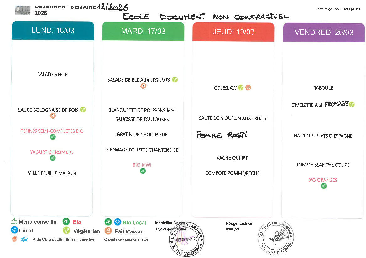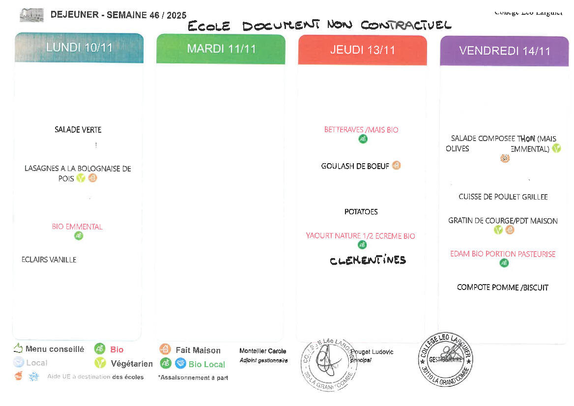 Les menus de la semaine prochaine à la cantine