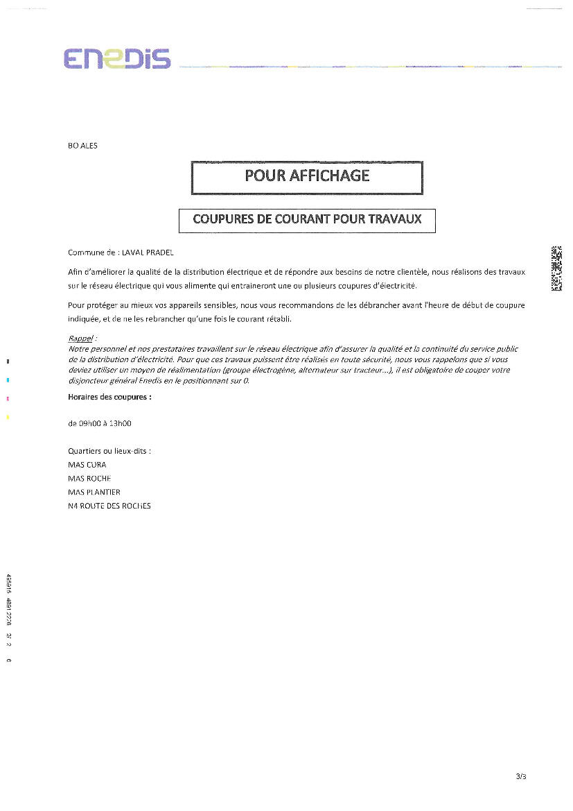 Coupures de courant 20/01/2026 Veuillez trouver en pj le détail des prochaines coupures prévues par Enedis.