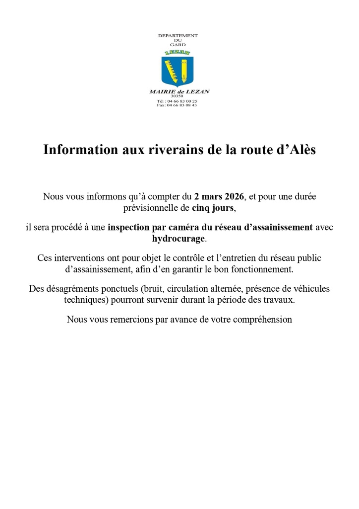 / Information aux riverains de la route d’Alès