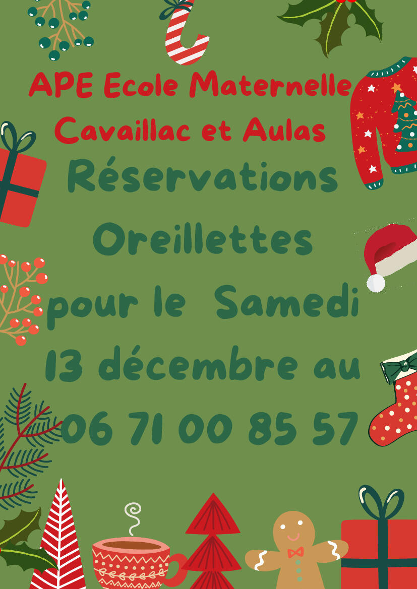 🎄Réservation des Oreillettes de l'APE Cavaillac et Aulas 🎅