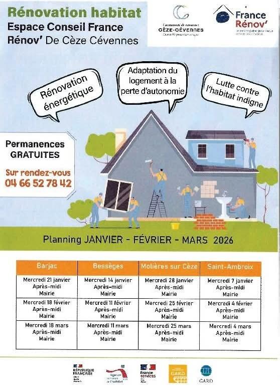 L’Espace Conseil France Rénov’ De Cèze Cévennes, financé par la communauté de communes et animé par le CPIE du Gard, est là pour vous guider gratuitement.