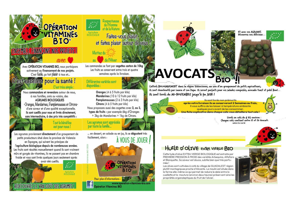 Cette année, nous vous proposons une vente d’agrumes, avocats et huile d'olive bios.