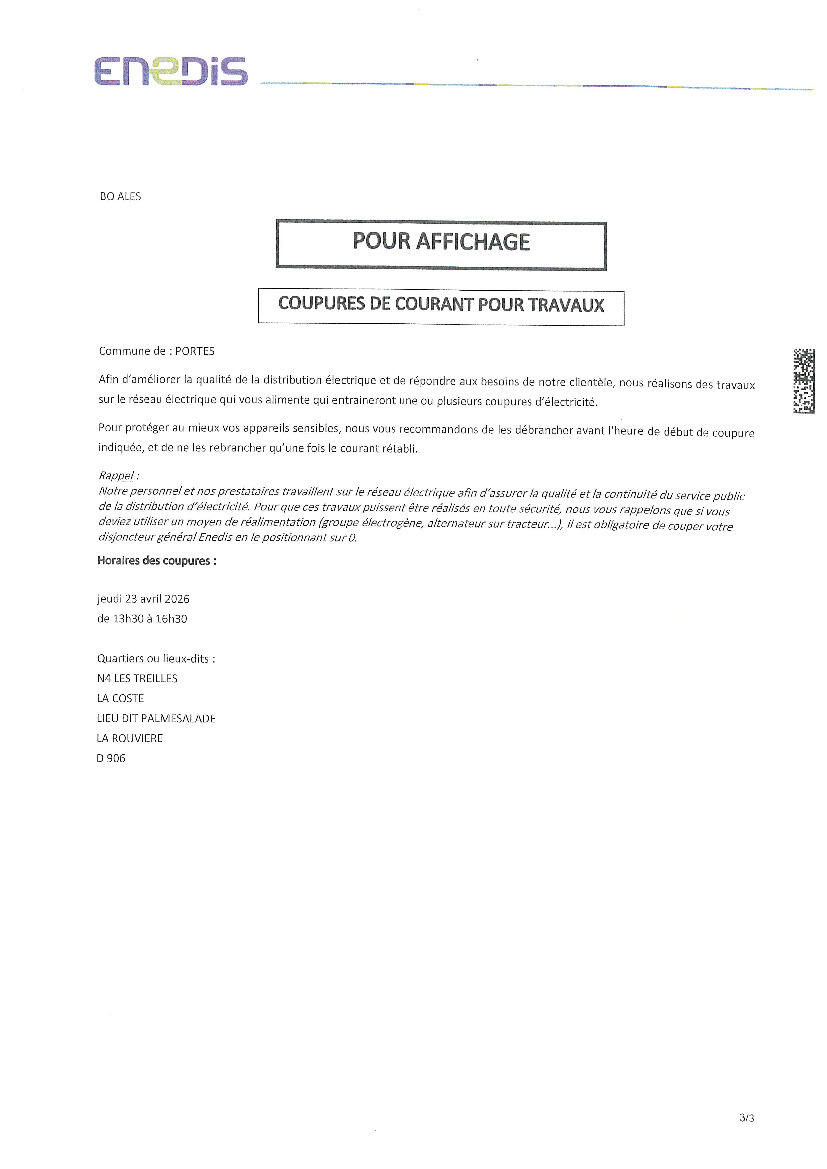 Afin d'améliorer la qualité de la distribution électrique, ENEDIS réalise des travaux sur le réseau le: