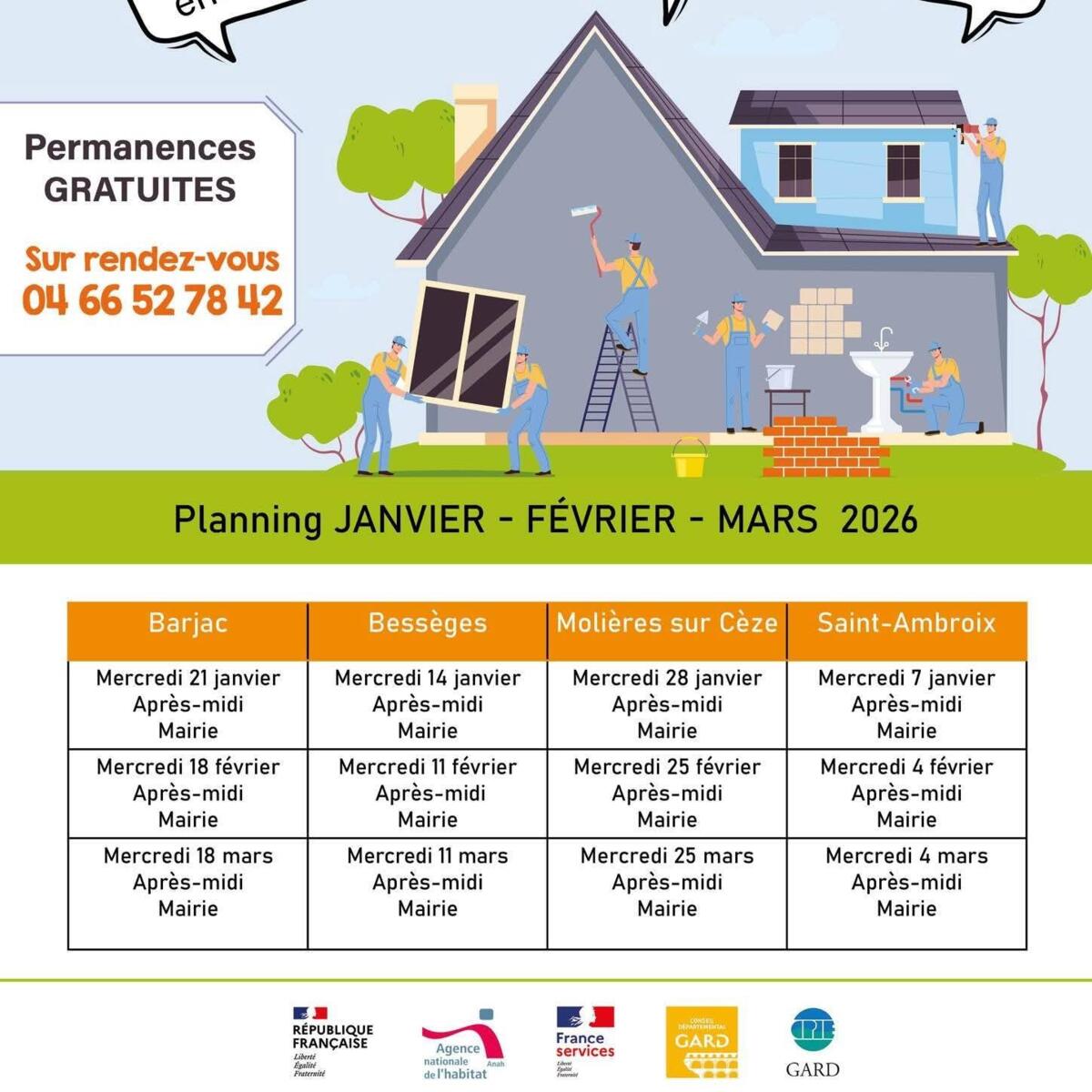 Un rendez-vous avec le conseiller France Rénov’ pourra vous être proposé afin de venir échanger sur votre projet lors des permanences de Barjac, Bessèges, Molières-sur-Cèze et Saint-Ambroix.