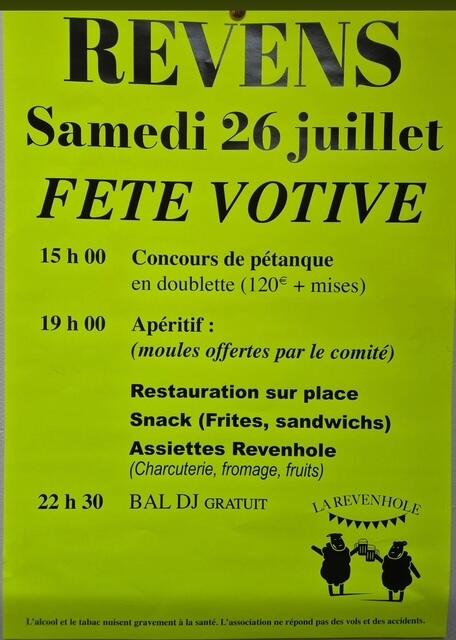 FÊTE VOTIVE DE REVENS SAMEDI 26 JUILLET 2025