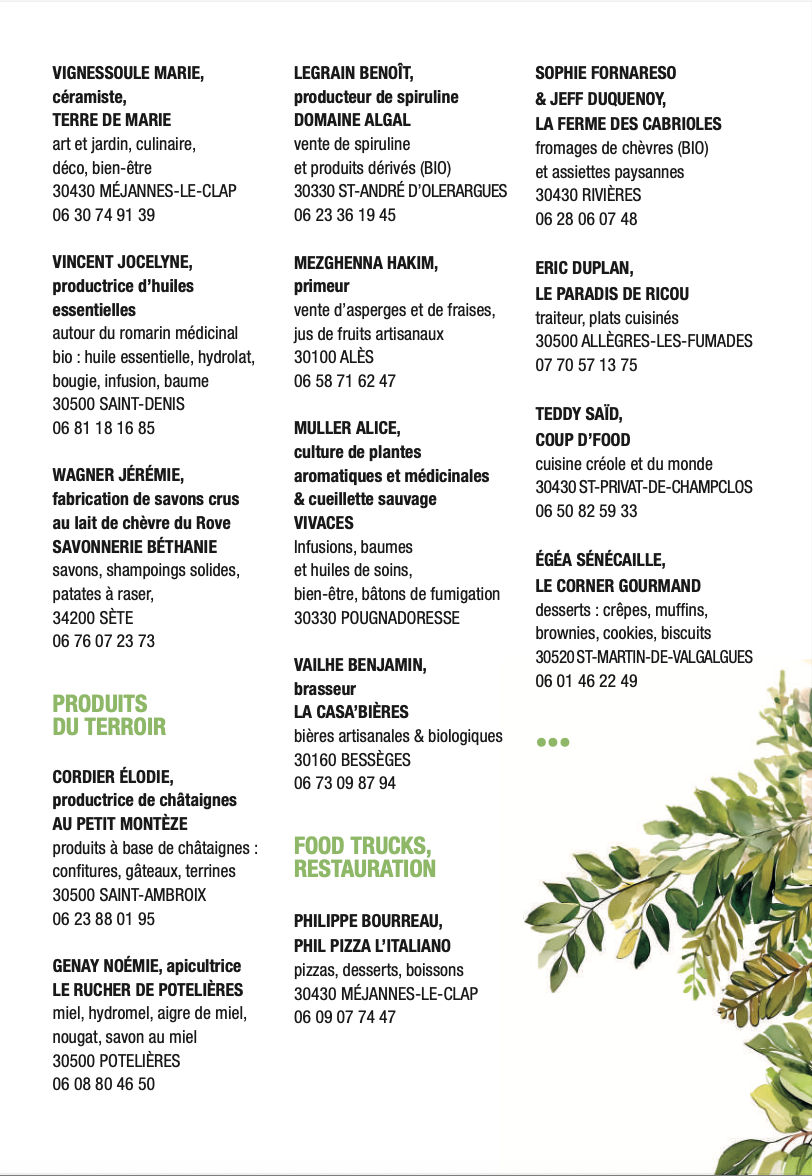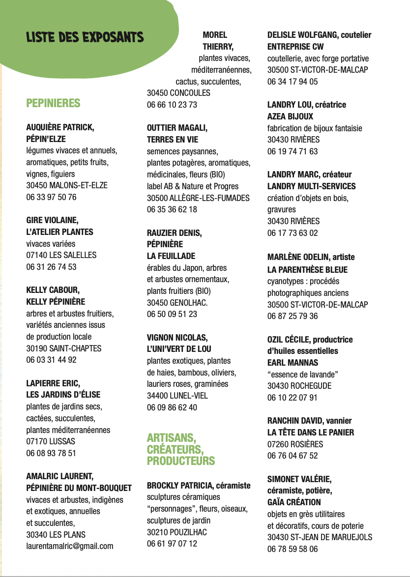 plus de 35 exposants vous attendent : pépiniéristes, produits du terroir et artisanat local...
