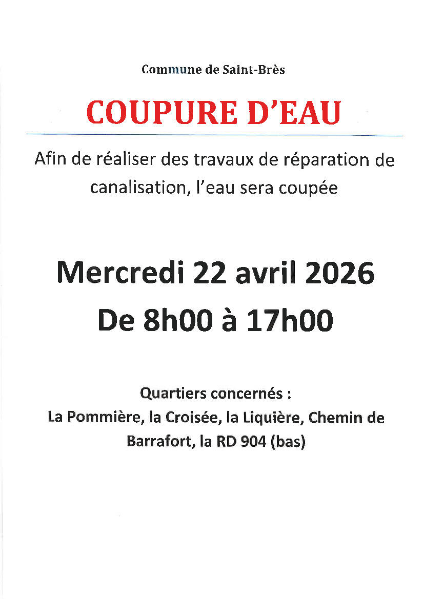 coupure d'eau (quartiers différents)