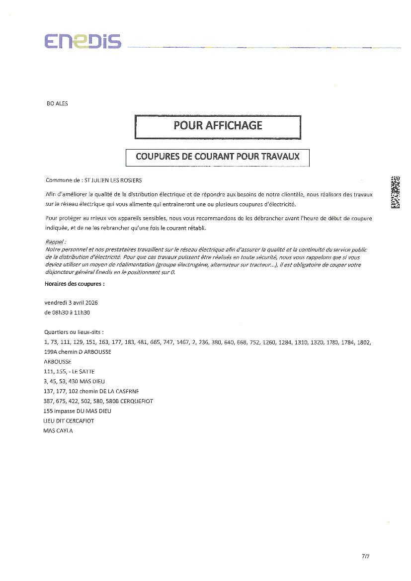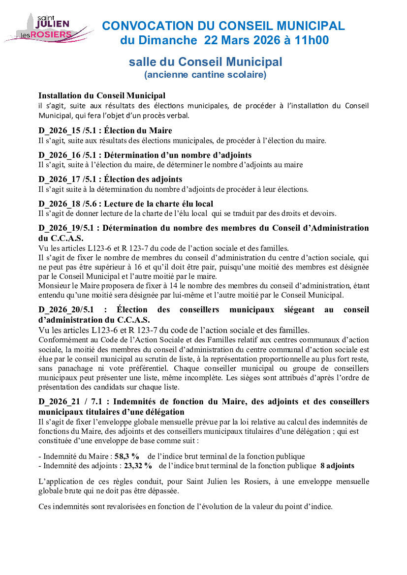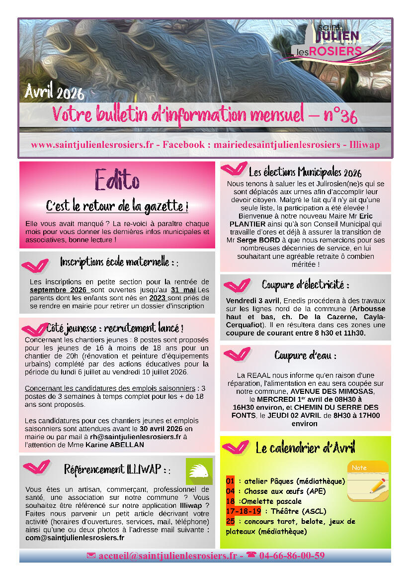 Toute l'actualité de Mairie de Saint-Julien-les-Rosiers