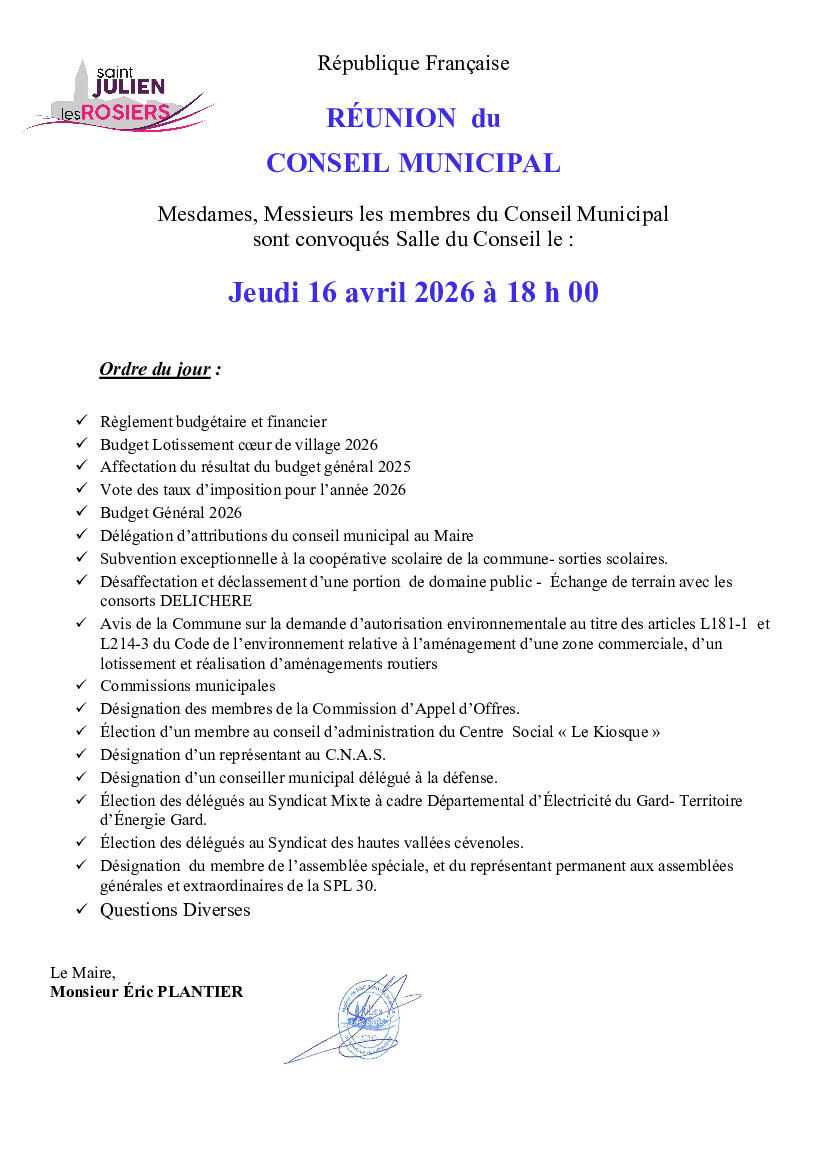 Convocation du Conseil Municipal du 16 avril 2026