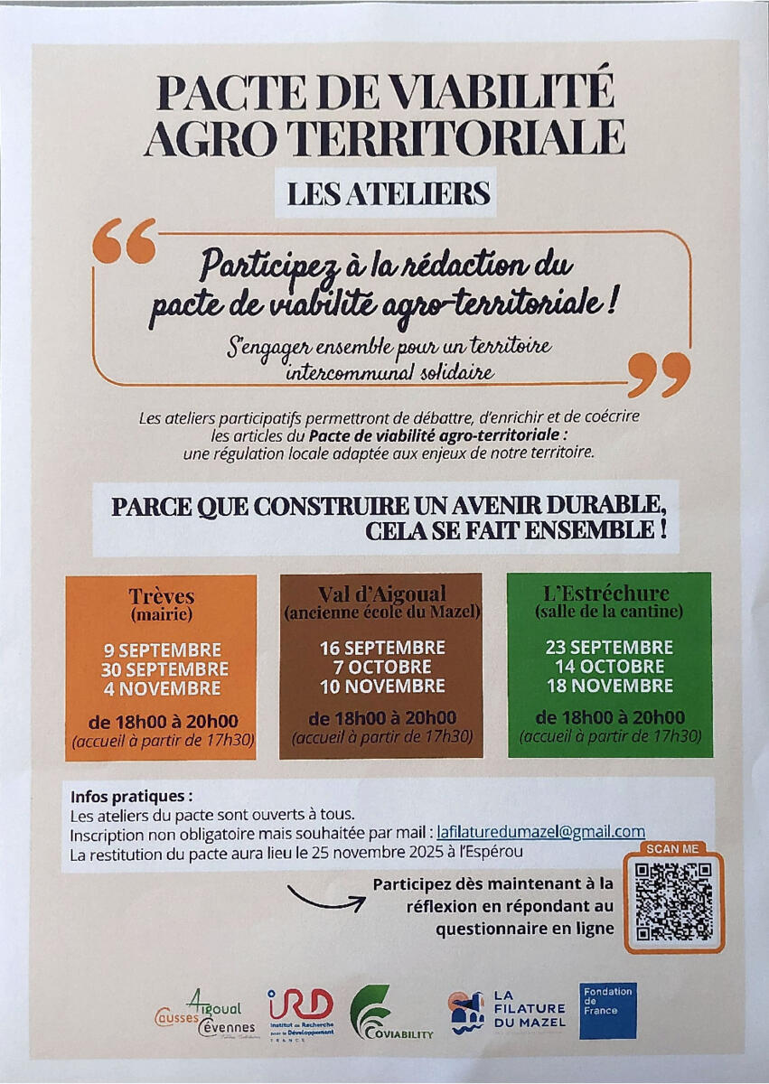 PACTE VIABILITÉ AGRO TERRITORIALE 03/09/2025 ATELIERS PARTICIPATIFS DU PACTE OUVERT À TOUS CALENDRIER CI JOINT