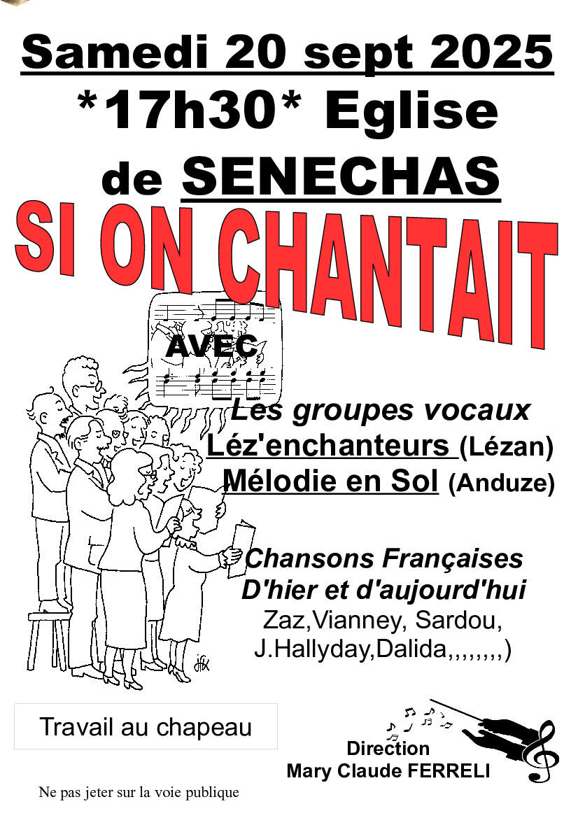 Chorale 01/09/2025 Les chorales Léz'enchanteurs et Mélodie en Sol se produiront samedi 20 sept 2025 17h30 dans l'église de SENECHAS