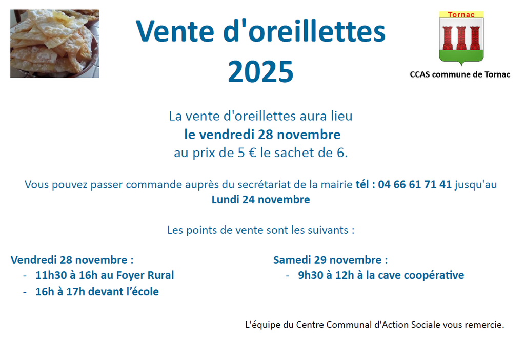 / CCAS - Vente d'oreillettes les 28 et 29 novembre