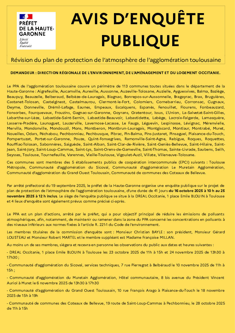 Plan de protection de l’atmosphère de l’agglo toulousaine