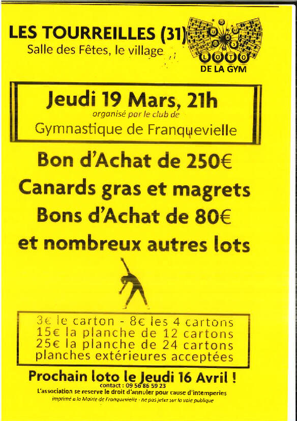 Loto de la gym le jeudi 19 mars à 21 h