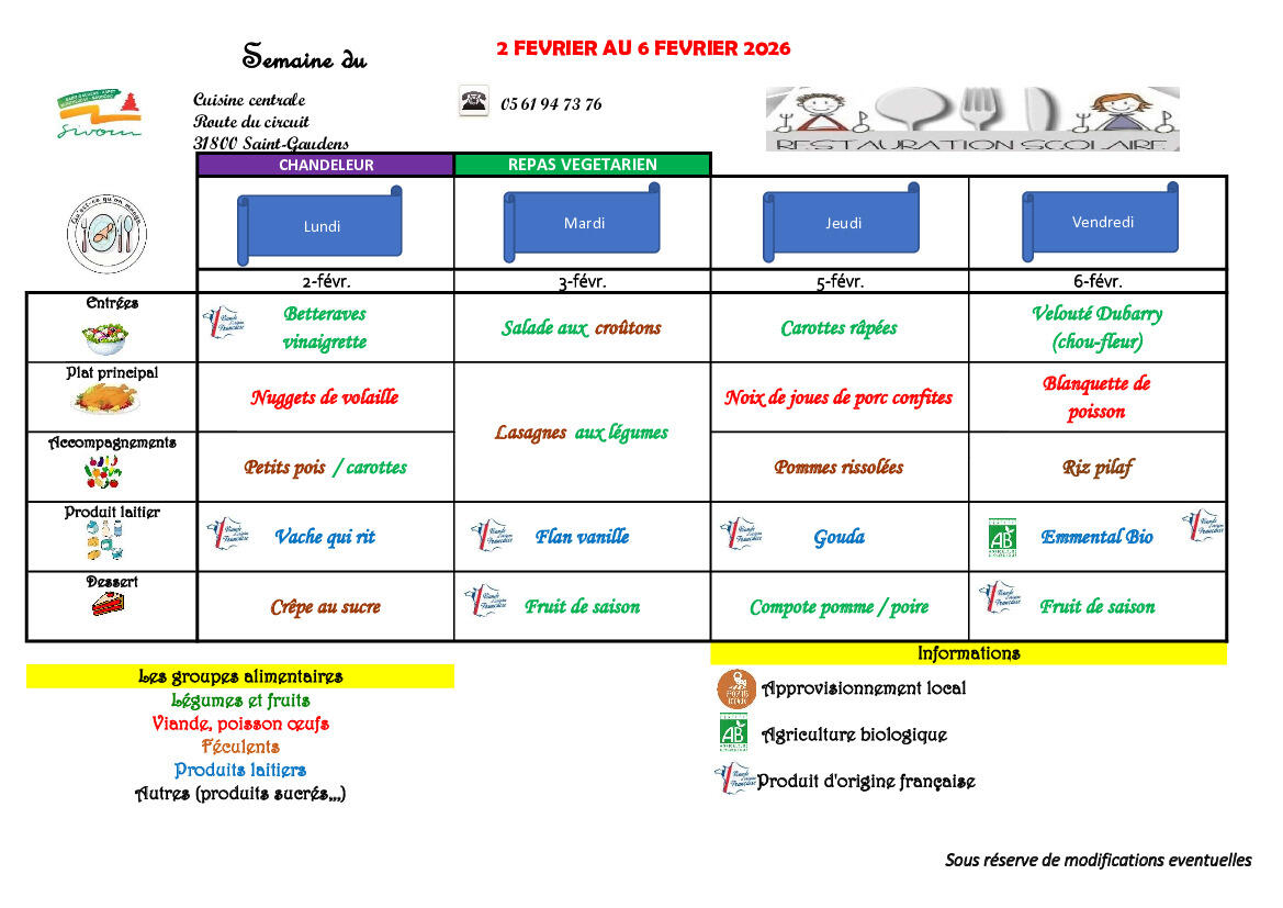 MENU du 02 au 06 février