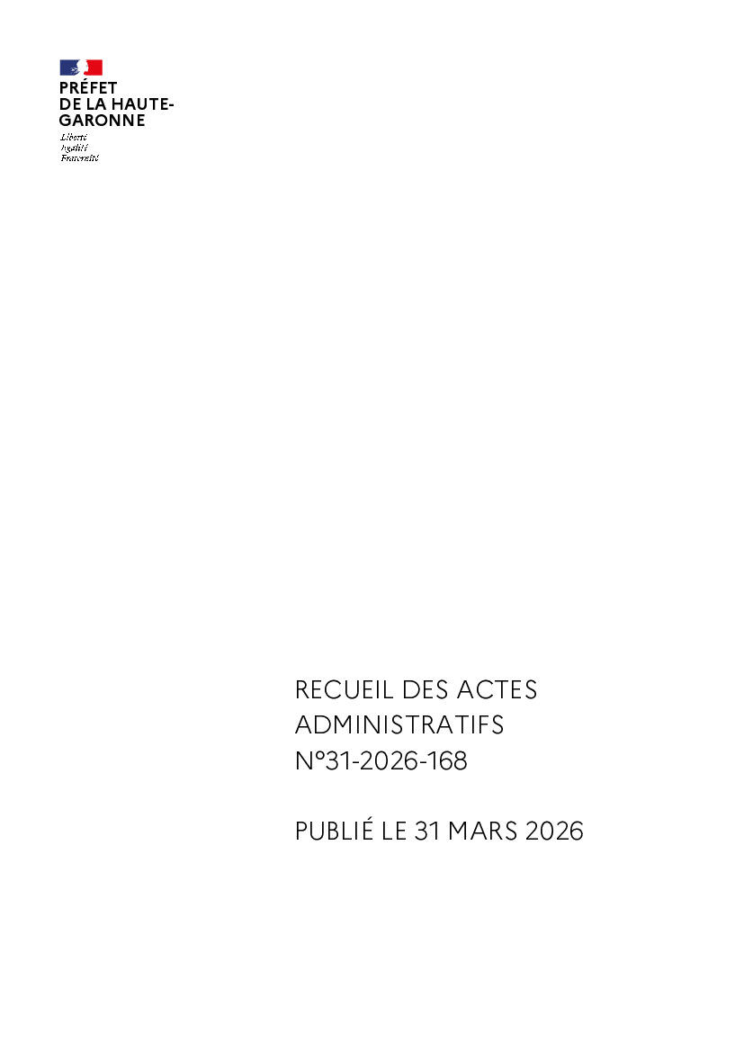 Vous trouverez ci-joint, l'extrait du recueil des actes administratifs concernant le renouvellement de l'arrêté préfectoral réglementant la vente, la détention et la consommation de protoxyde d'azote dans le département de la Haute-Garonne pour la période du 1er avril 2026 au 30 juin 2026.