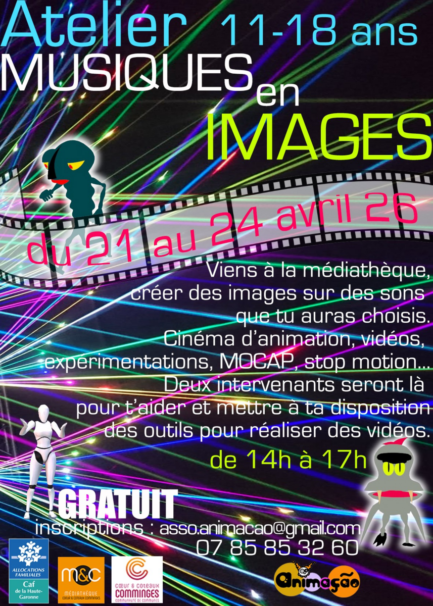 Du mardi 21 au vendredi 24 avril 2026 de 14h à 17h, l'association Animaçao animera un atelier à la médiathèque intercommunale de Saint-Gaudens.