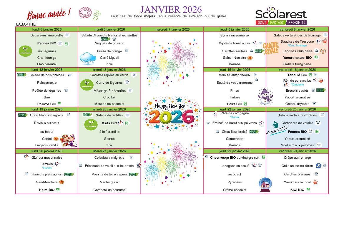 Votre mairie / Actualités / Menu de janvier - Cantine scolaire