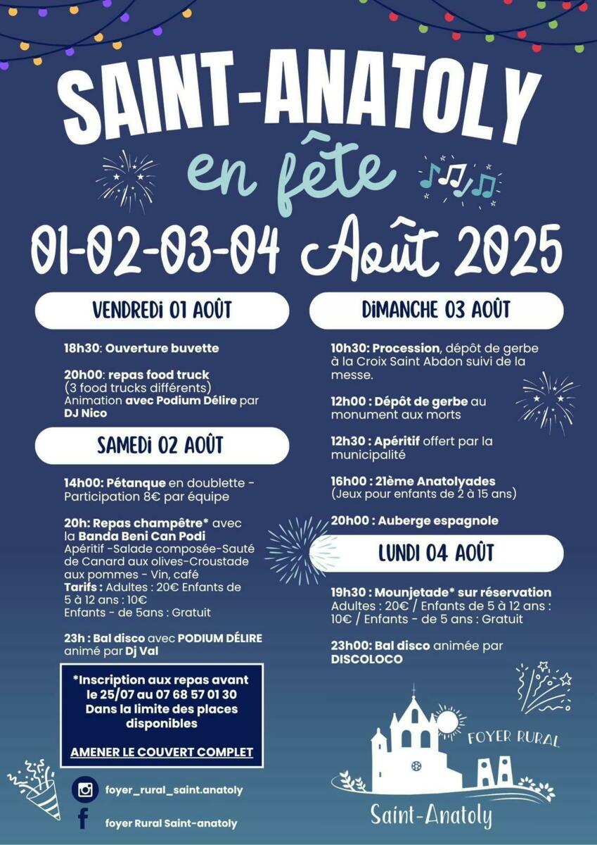 SAINT ANATOLY en fête : du 1er au 4 août 2025