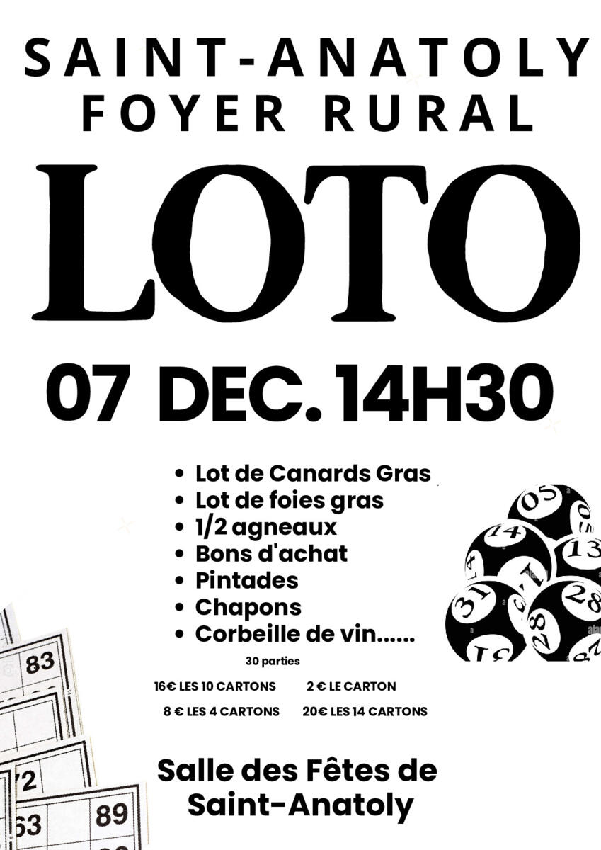 LOTO Foyer Rural Saint Anatoly - 7 décembre 14h30
