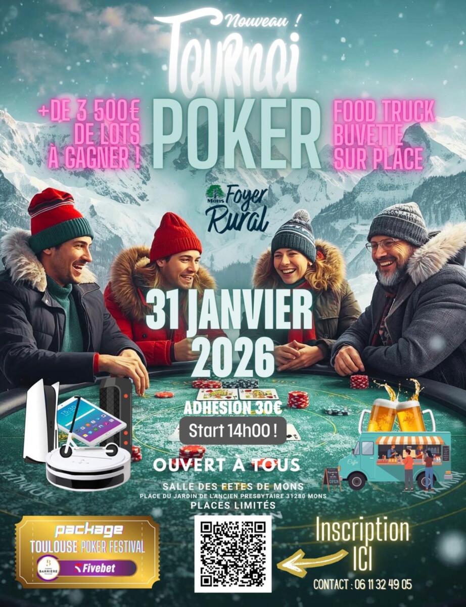 Tournoi de poker 31/12/2025 https://www.helloasso.com/associations/foyer-rural-de-mons/evenements/tournoi-de-poker