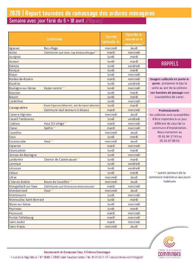 Report de collecte des ordures ménagères