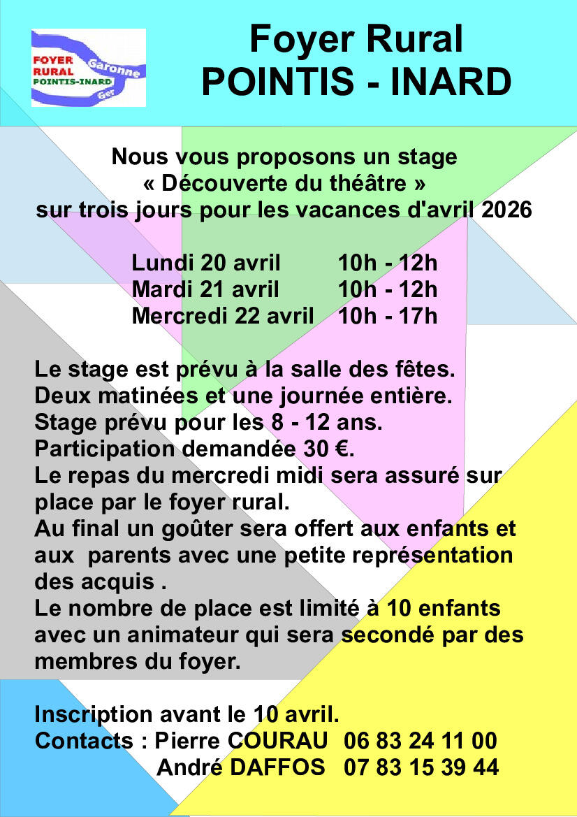 Le foyer rural de Pointis-Inard organise un stage de découverte du théâtre la première semaine des vacances scolaires de Printemps