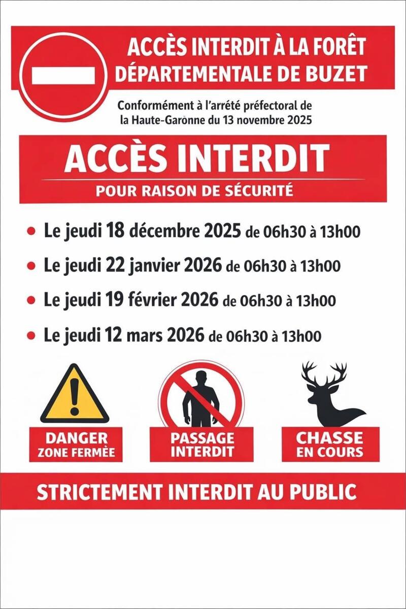 INFORMATION – FORÊT DE BUZET – CHASSE / RÉGULATION DU GIBIER