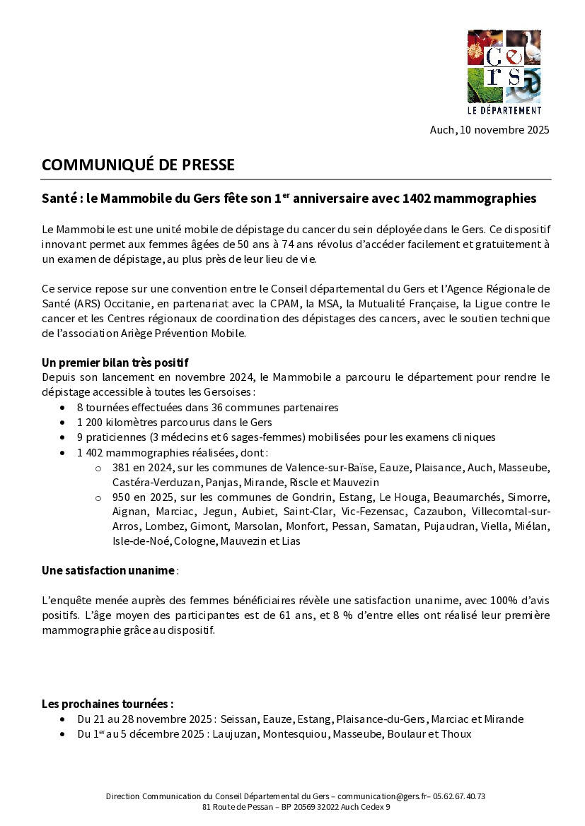 Santé : le Mammobile du Gers fête son 1er anniversaire