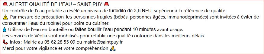 ALERTE QUALITÉ DE L’EAU – SAINT-PUY