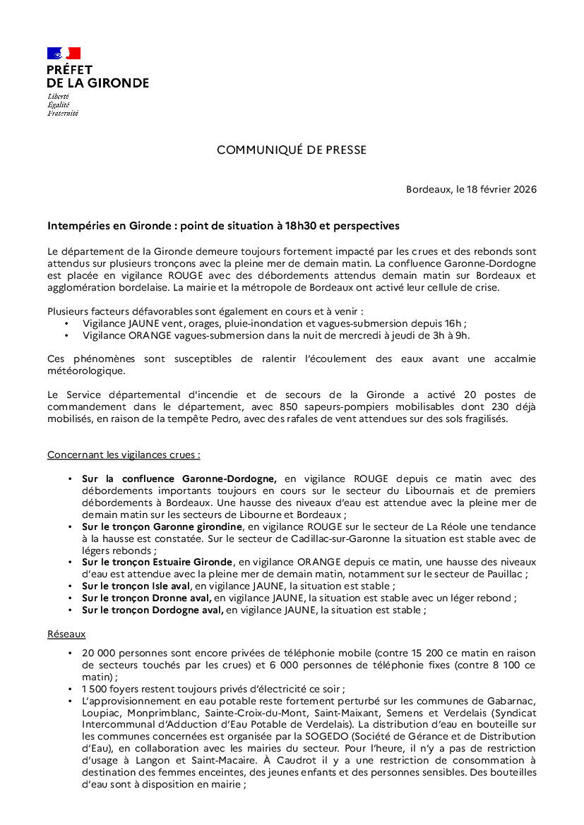 Votre mairie / Actualités / INTEMPERIES : communiqué de presse de la Préfecture