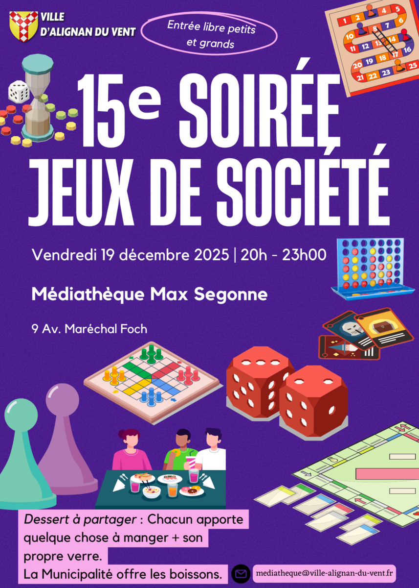 15e Soirée jeux de société ce soir vendredi 19/12/25 à 20h