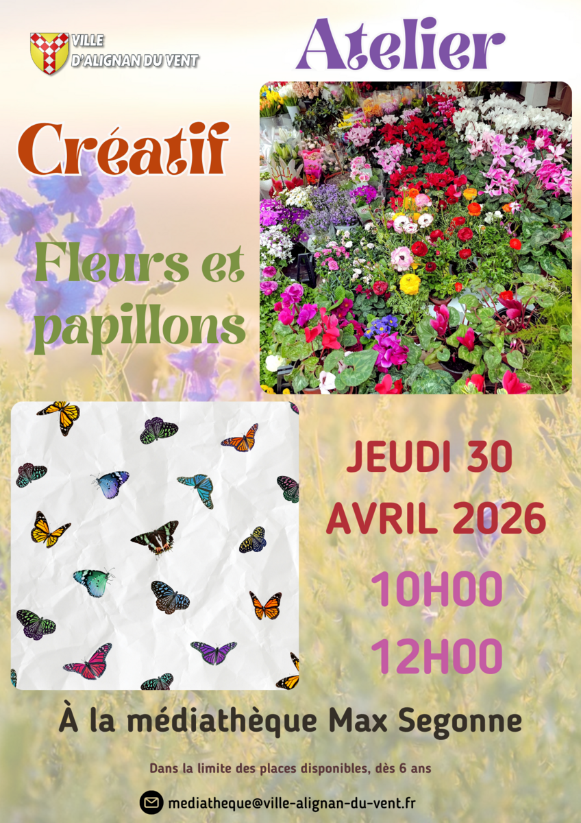 Atelier créatif fleurs et papillons le 30 avril à 10h