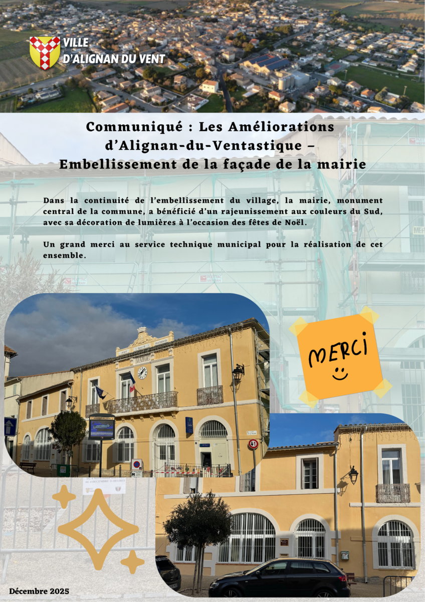 Toute l'actualité de Mairie d'Alignan-du-Vent