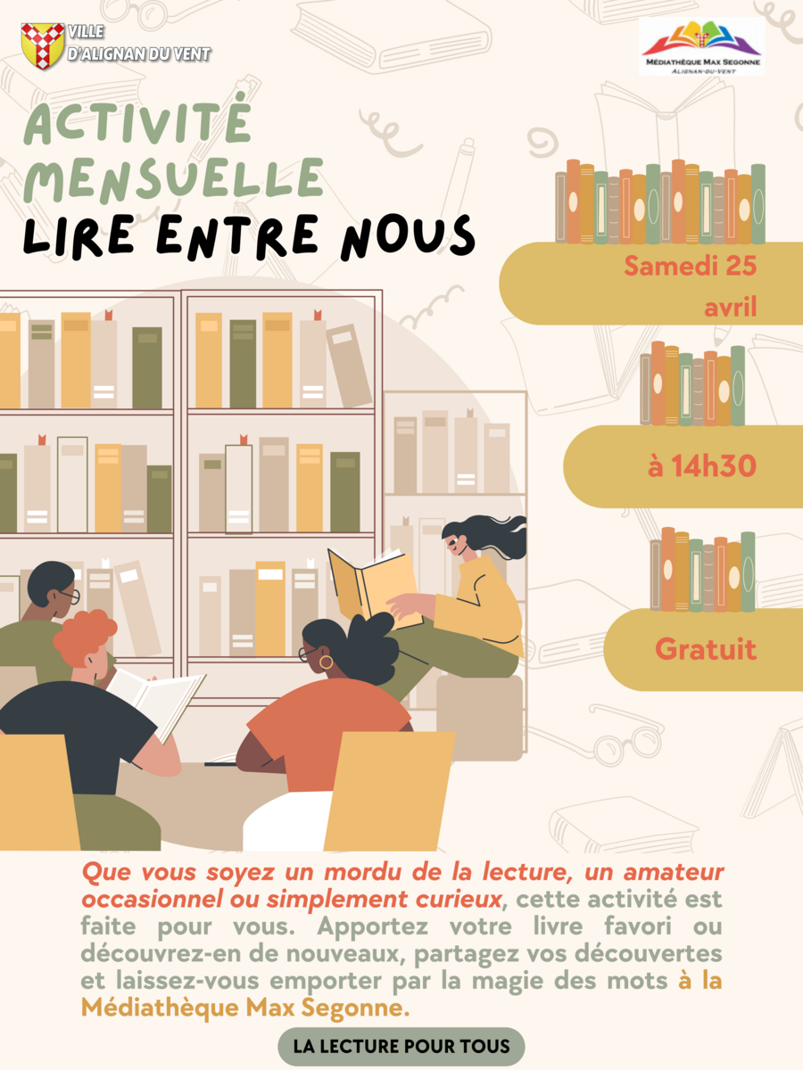Activité Lire entre nous le samedi 25 avril 2026 à 14h30