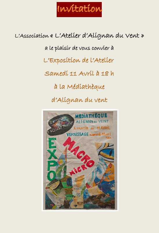 Invitation vernissage de l'exposition de l'atelier d'Alignan